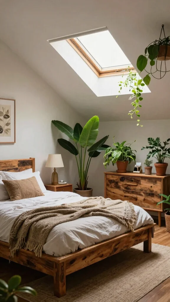 Bringing natural elements into your attic bedroom can elevate its design and create a refreshing atmosphere. Incorporate wooden furniture, stone decor, and lush greenery to foster a connection with the outdoors. Wooden beams or reclaimed wood pieces add warmth and character to the space.