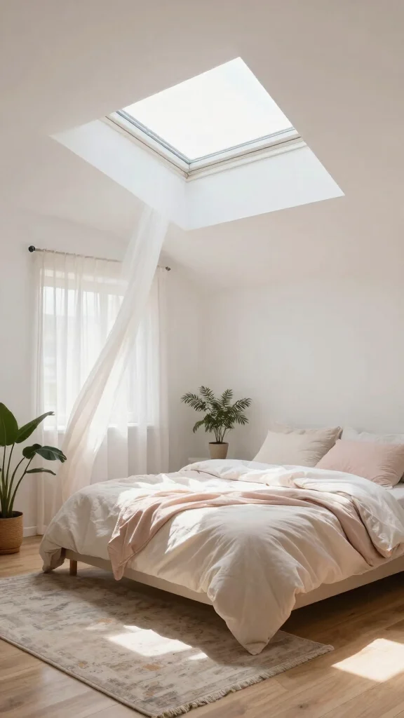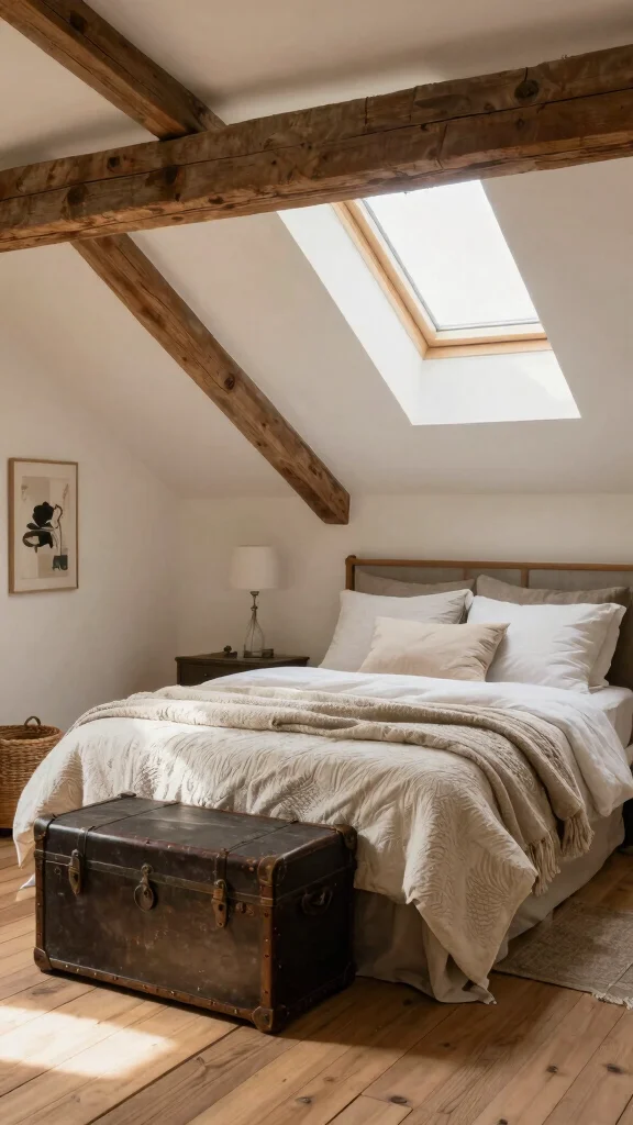 Skylights can dramatically enhance your attic bedroom by flooding the space with natural light. This design element creates an illusion of height, making the room feel more open and inviting, especially in areas with slanted ceilings. Pairing this brightness with plush white or light-colored bedding will amplify the airy atmosphere.