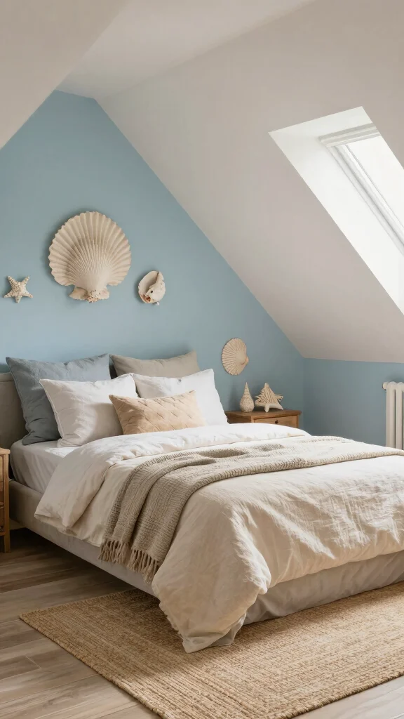 Craft your attic bedroom ideas around a single theme to make a small space feel cohesive and alive. For coastal vibes, add light blues, sandy neutrals, and seashell accents—practical, shareable, and instantly calming.