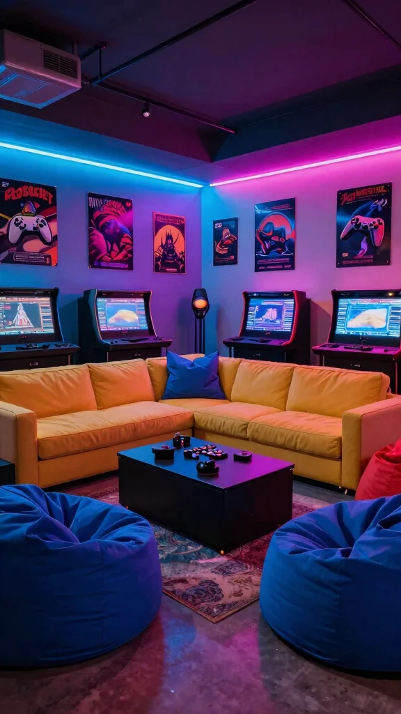 An oversized sectional can accommodate friends for multiplayer sessions, while bean bags or floor cushions provide extra seating options.