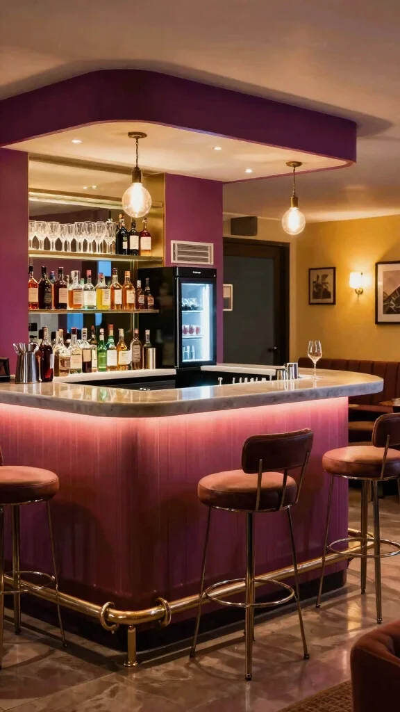 Adding a small fridge or wine cooler can elevate functionality, while neatly organized bar tools and accessories enhance convenience.