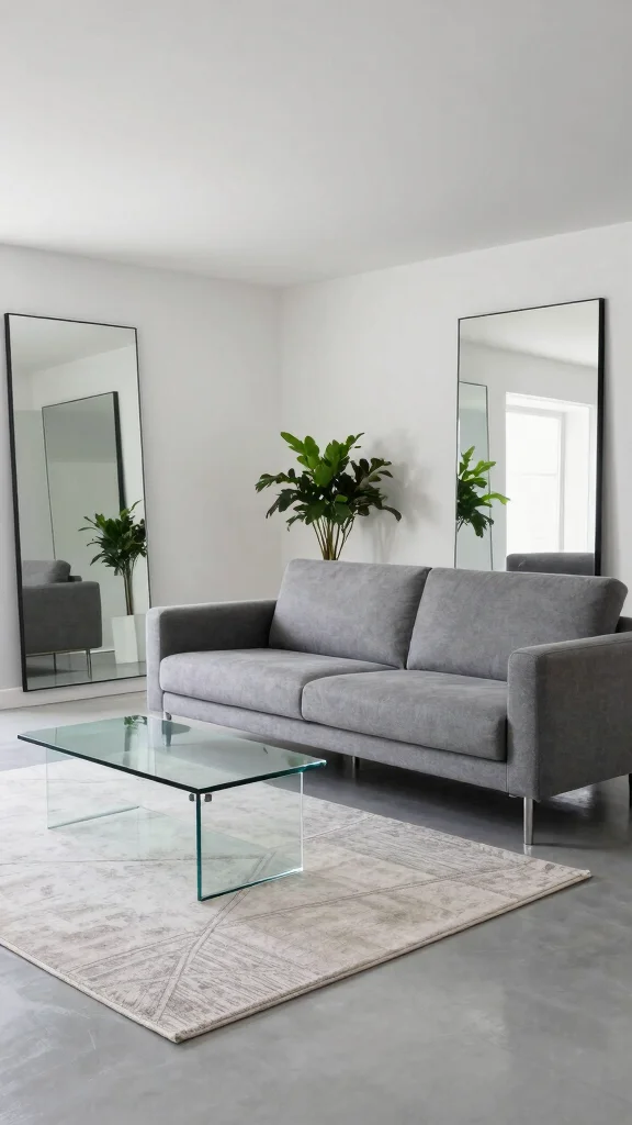 To amplify the sense of space, consider adding large mirrors to reflect light, making the room feel larger. Simple shelving units can store decor or books without overwhelming the design.