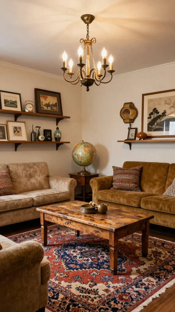 Adding wallpaper with a vintage pattern can dramatically enhance the space, introducing depth and personality. Layered lighting, like a vintage chandelier alongside modern lamps, creates an enchanting glow.