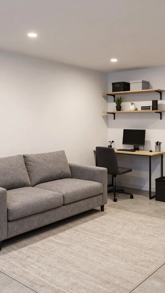 Maximize space with clever basement furniture ideas: choose a modular sofa or a compact e-sectional, opt for nesting tables, and use multi-functional pieces like an ottoman with storage. Floating shelves and built-in benches add seating and storage without eating floor area. Create a traffic-friendly layout by keeping pathways clear and orienting seating toward a focal point (TV, fireplace, or projector). Add a slim console behind the sofa for additional storage. All of these strategies support practical basement living room ideas for small spaces with stylish living room upgrades.
