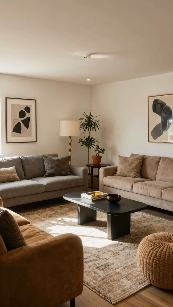 Fun fact: a funky, modular layout can double the perceived space in basement living room ideas. Try 3 zones, 2 seating heights, and 1 oversized floor cushion for casual movie nights.