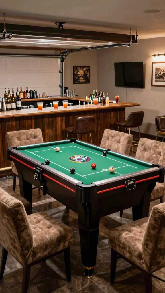 Combine your bar area with a game table for entertainment, encouraging social interaction among guests.