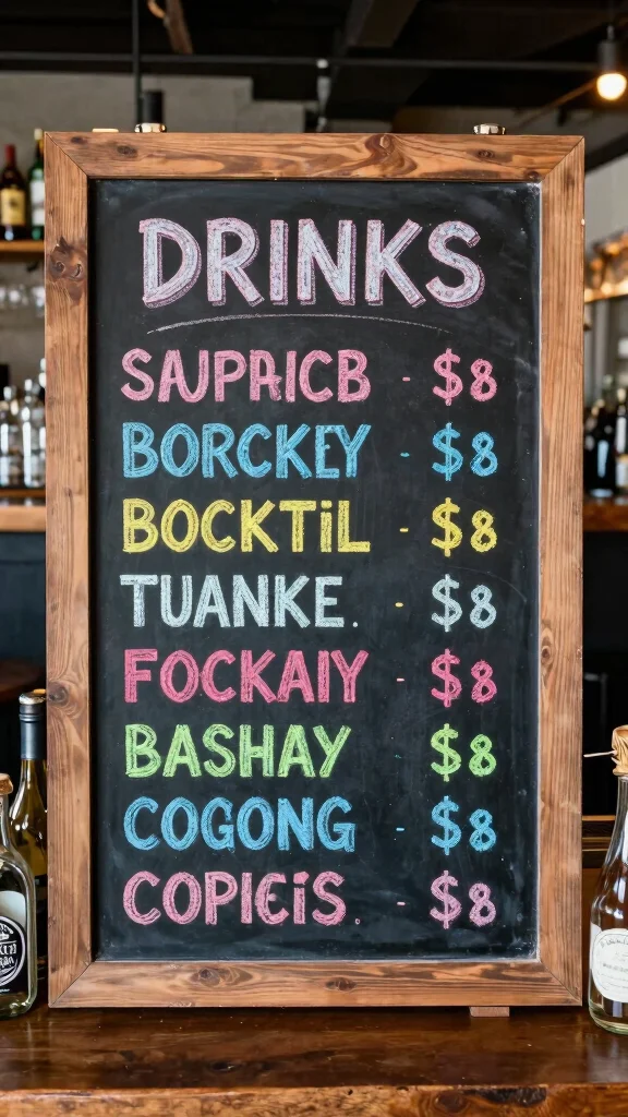 Install a chalkboard to list drink specials, making it easy for guests to choose their favorite cocktails.