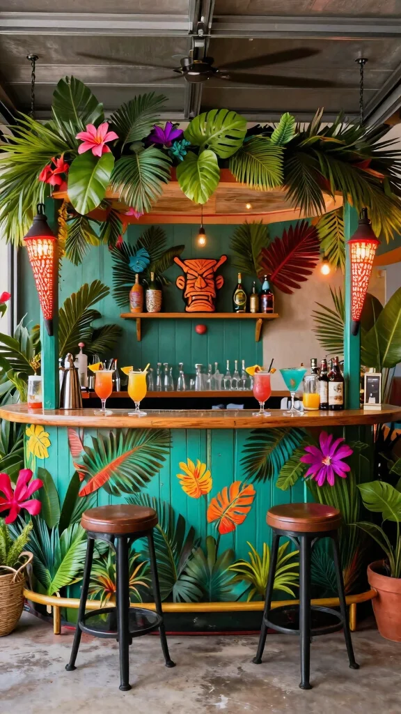 A themed cocktail bar allows you to express creativity and bring a unique vibe to your gatherings. Whether you choose a ‘Tropical Paradise’ or ‘Speakeasy’ theme, your decor can reflect that vision beautifully. For a tropical theme, think vibrant colors and tiki torches, while a speakeasy might embrace dark woods and vintage charm. This idea is perfect for making your get-togethers memorable and showcasing your personality.