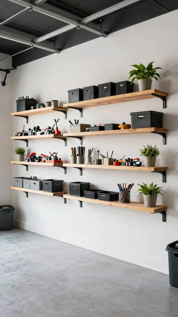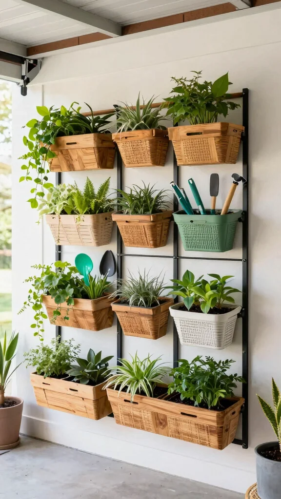 For gardening enthusiasts, creating a container garden storage area can beautifully organize tools and supplies. Using vertical planters or wall-mounted pots not only keeps your garage tidy but also introduces a touch of greenery into the space.