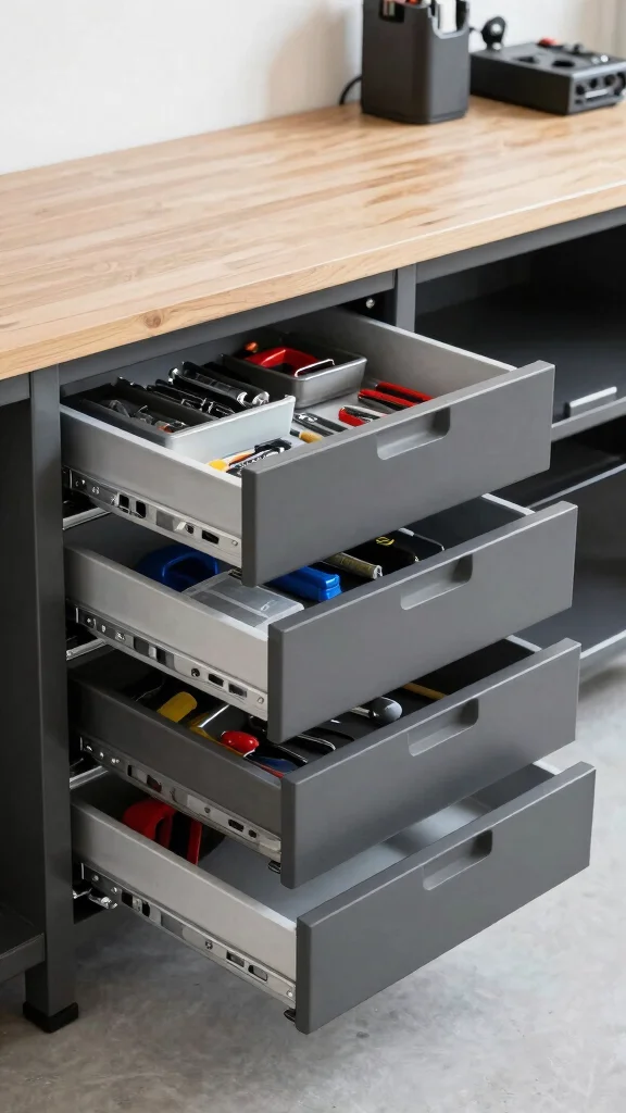 A foldable workbench is an ideal solution for maximizing space in your garage. It provides a functional workspace when needed and can be tucked away when not in use, making it perfect for multi-purpose garages. This flexibility encourages creativity without sacrificing space.