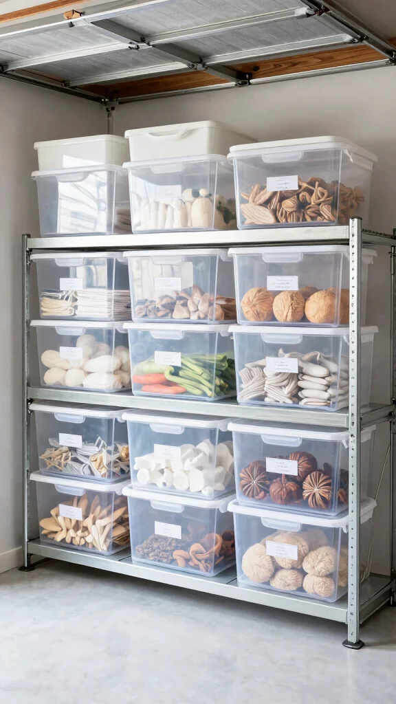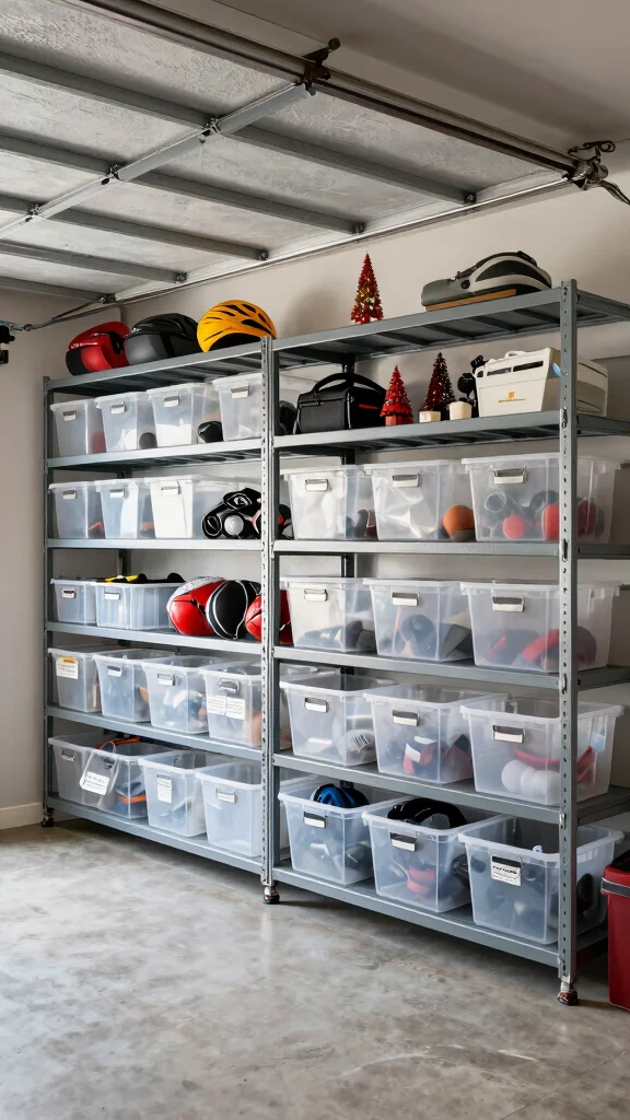 Label and group items in clear bins so you can see what’s inside, and keep a dedicated zone for seasonal gear to maintain a clutter-free garage.