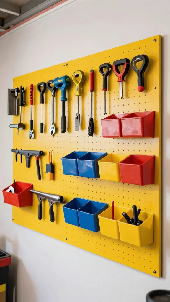 Create a customizable storage solution by using pegboard walls to hang tools and accessories neatly.