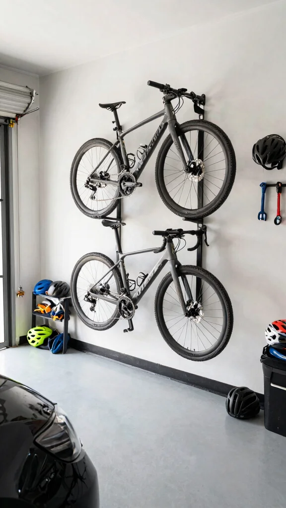 This solution not only organizes your bikes but also adds a sleek, modern touch to your garage environment.