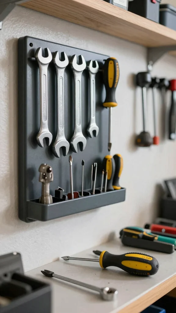 Magnetic tool holders are a chic and efficient way to store small metal tools like wrenches and screwdrivers. By affixing them to the wall, you keep your tools visible and within reach, which can save valuable time during projects. This minimalist approach also adds a modern flair to your garage decor.