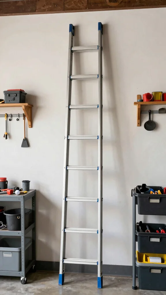 This solution not only keeps your ladders organized but also enhances the functionality of your garage while maximizing usable space.