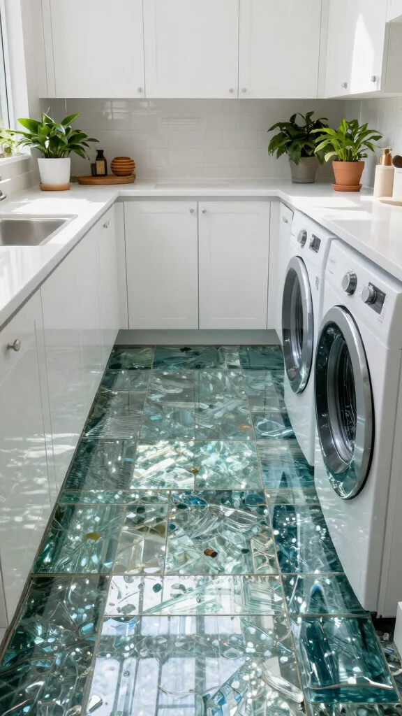 Greenhouse flooring is an innovative and eco-friendly option that adds a unique touch to your laundry room. Made from recycled glass and organic materials, this flooring is not only sustainable but also visually striking. The shimmering surface of glass can create a stunning effect, bringing elegance to your space while ensuring durability.