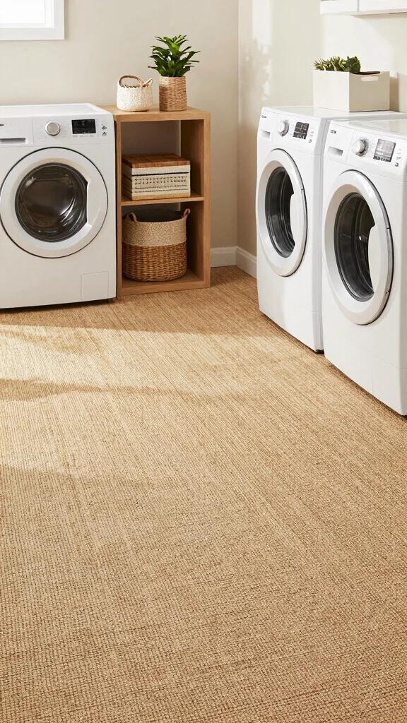 Natural fiber flooring, such as sisal or seagrass, introduces a unique texture and warmth to your laundry room while remaining environmentally friendly. These sustainable materials offer a cozy feel and can elevate the overall decor. Best suited for low-moisture areas, natural fiber flooring can create a serene and inviting environment.