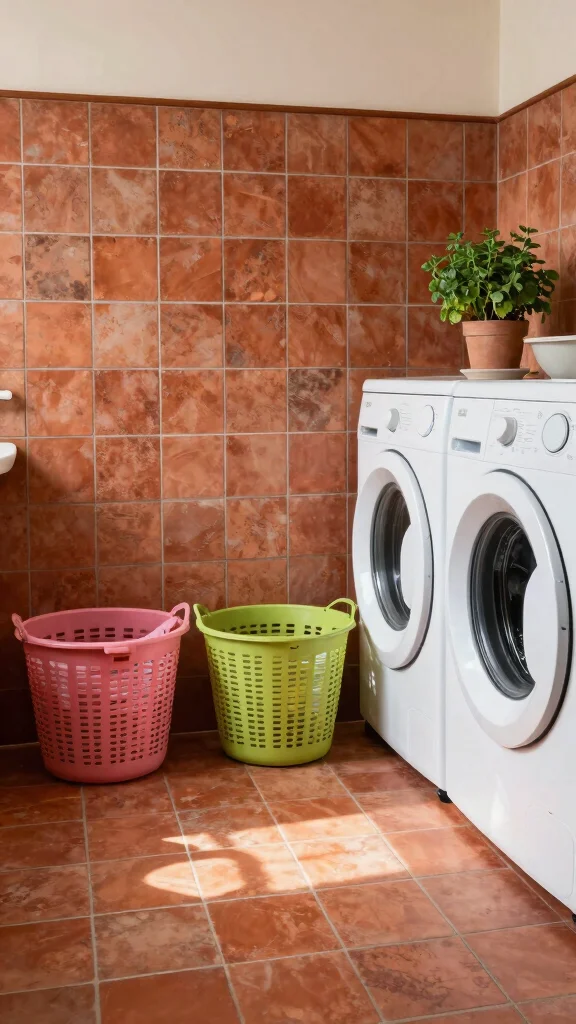 This flooring not only adds character but also ensures safety with its slip-resistant surface. The natural textures of terracotta elevate the design, making your laundry room a delightful space to spend time in.