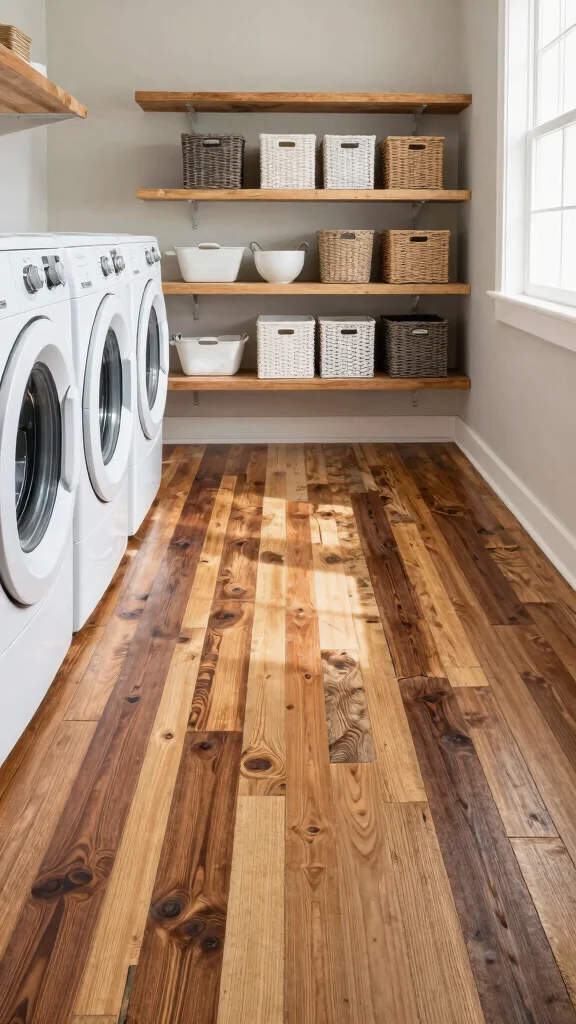 Fun fact: Reclaimed wood flooring can reduce waste by up to 70% compared with new lumber. Consider it to add unique character to your laundry room while supporting eco-friendly laundry room flooring ideas you love.