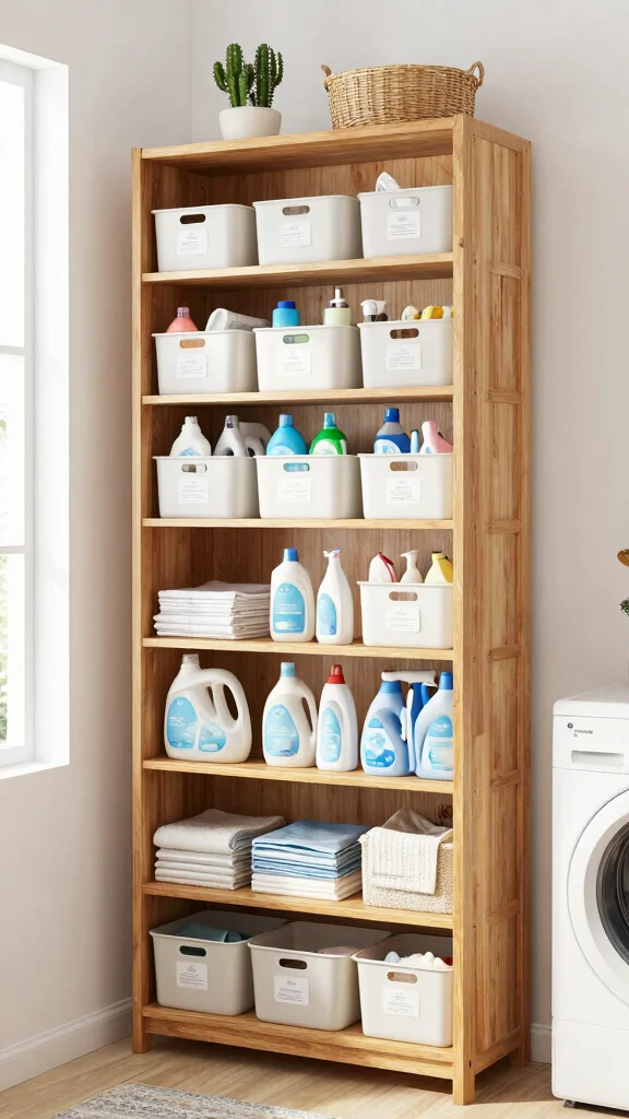 – Use What You Have: Repurpose items from other parts of your home. An old bookshelf can become a laundry shelf with a little creativity.