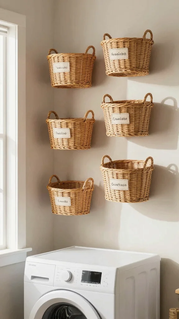 Wall-mounted baskets offer a chic and functional way to organize your laundry items. These stylish storage solutions can accommodate everything from dirty clothes to essential supplies, turning a necessity into a design feature. Hang them above your washer or along an empty wall for easy access and to add a decorative touch to your laundry room.