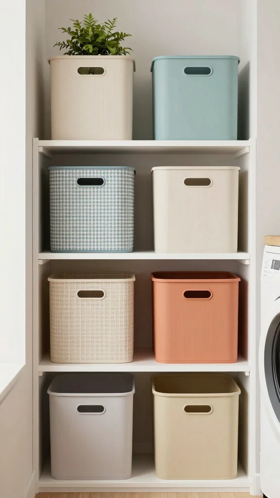Choosing the right storage bins can significantly enhance your laundry room’s appearance. Instead of basic plastic containers, opt for stylish woven baskets or colorful bins that add charm to the space. This approach keeps your supplies organized while contributing to the decor.